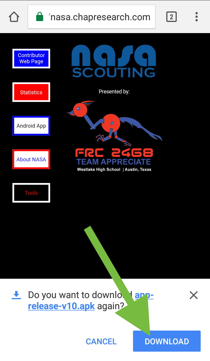 - Bring up nasa.chapresearch.com on the android phone you want to download the Controller App on.