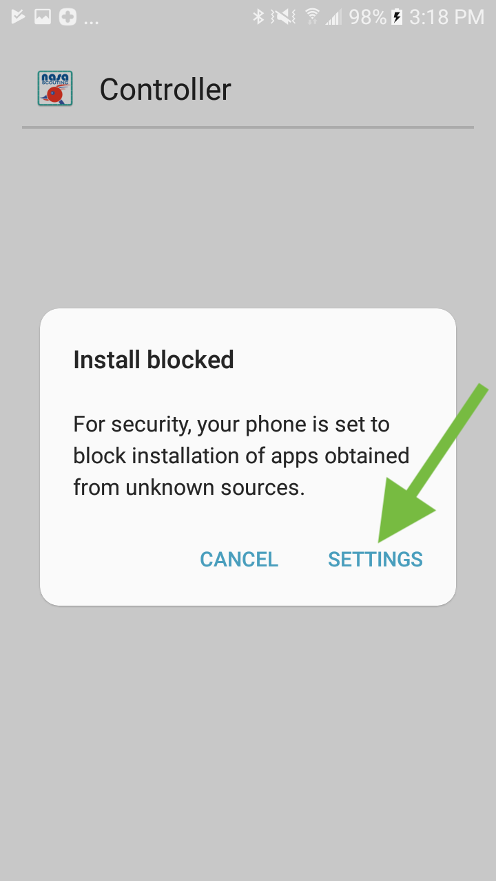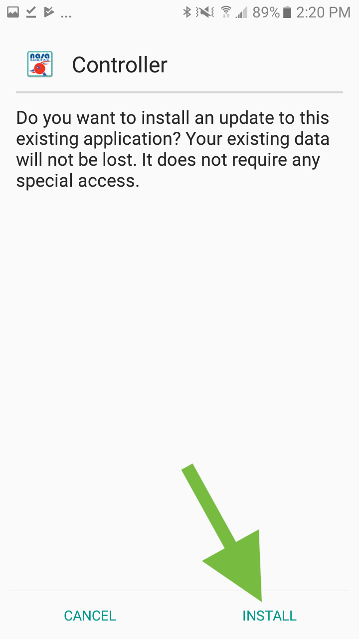 - Tap on the install button, if it does not work, make sure you are using an android phone, and that you don't already have a version of the Controller App.